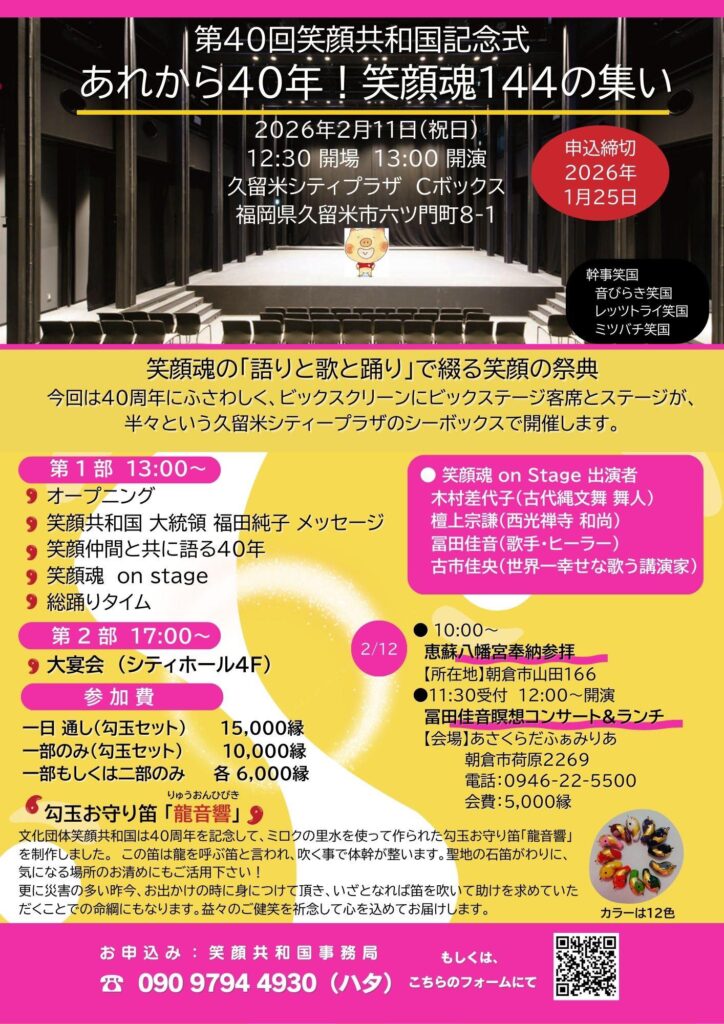 来年2026年は文化団体笑顔共和国も40周年を迎えます、40年の笑顔の道に間違いなかったことを実践の