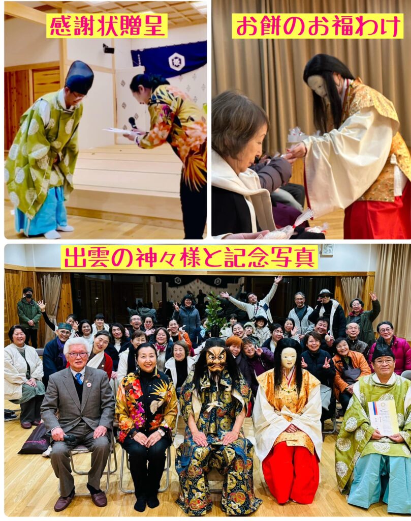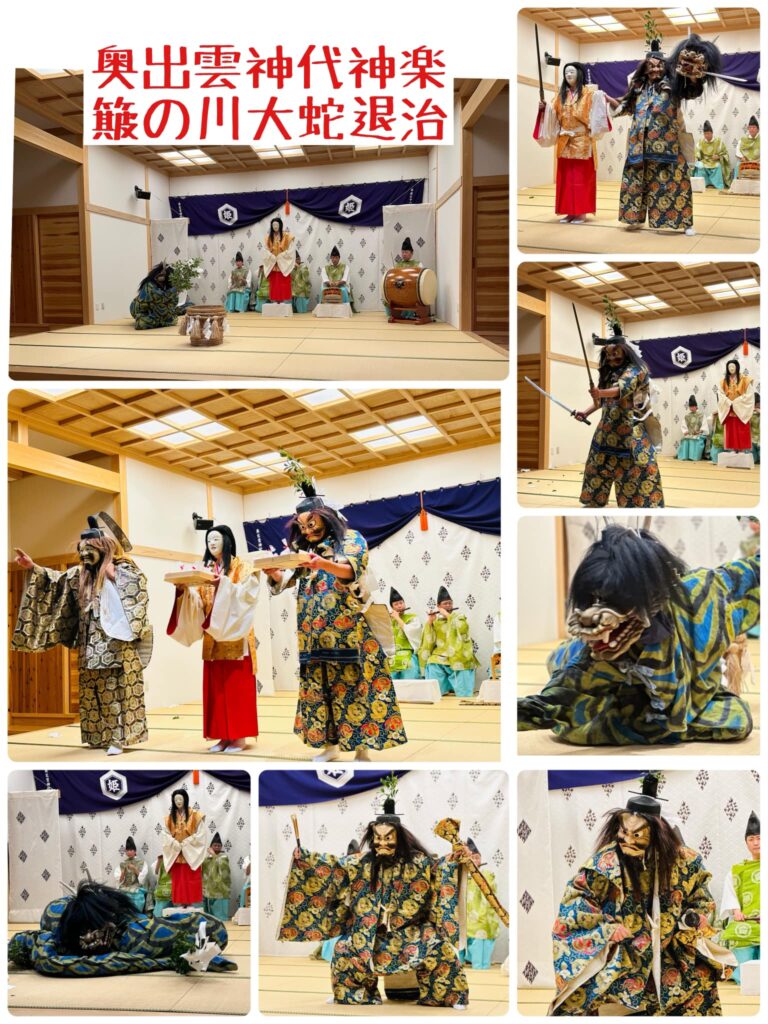 地元有志の方で、構成された奥出雲神代神楽(かぐら)社中を、宇田川館長の特別のお計らいで素晴らしい神楽殿にご案内頂き私達の為にだけご披露下さいました!