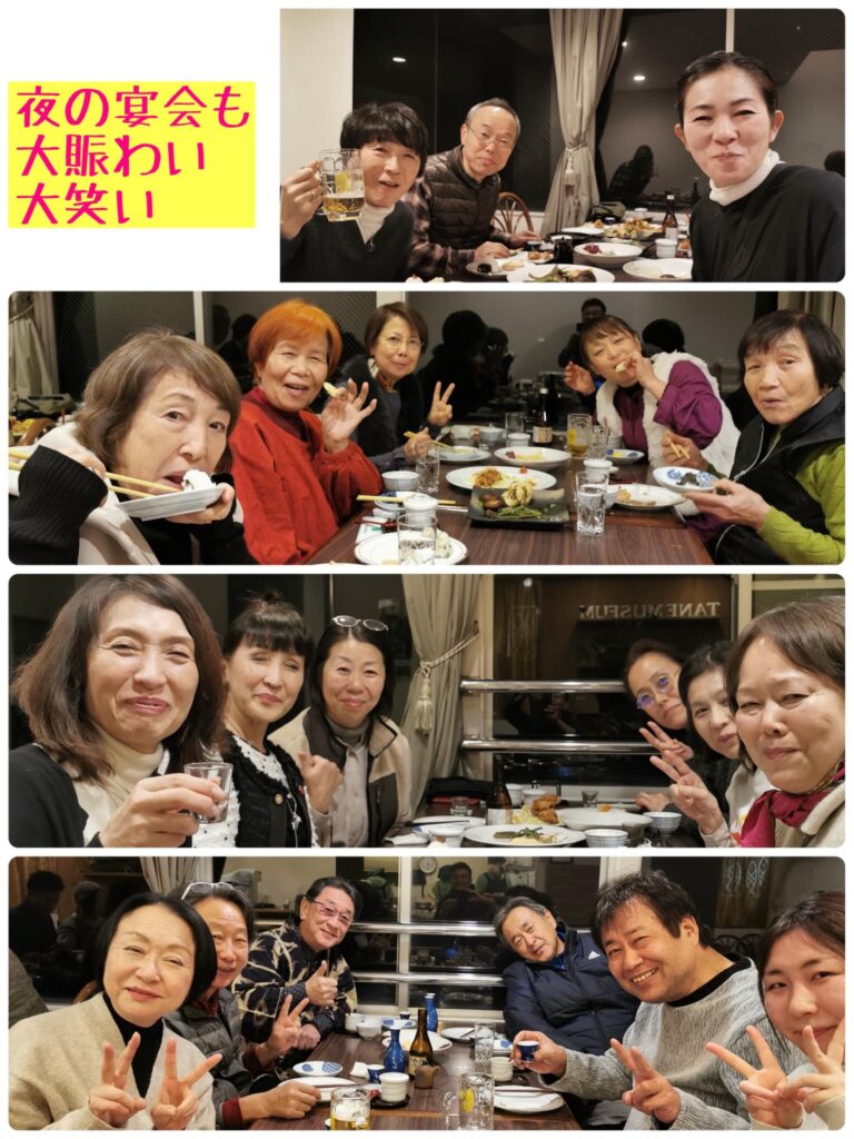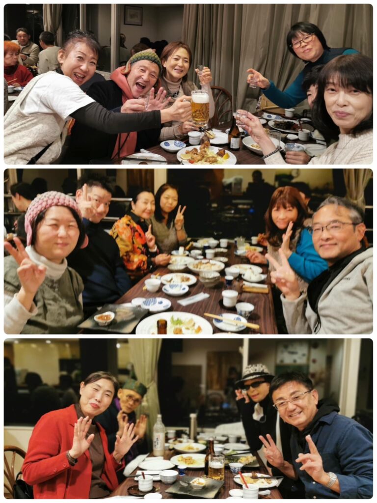 夕食は、お料理人美恵さんと地元の方々が協力しての、美味しいお料理に全国から集まった笑顔仲間は最高に盛り上がりました!